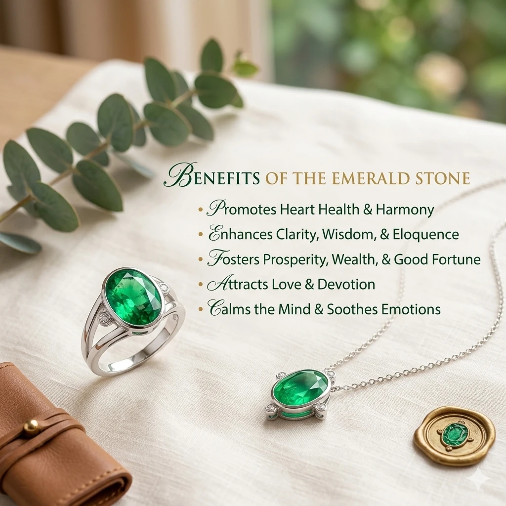 Wearing an Emerald gemstone is believed to enhance mental clarity, improve communication skills, and support success in business, education, and creative fields. It is especially beneficial for professionals, students, and entrepreneurs.