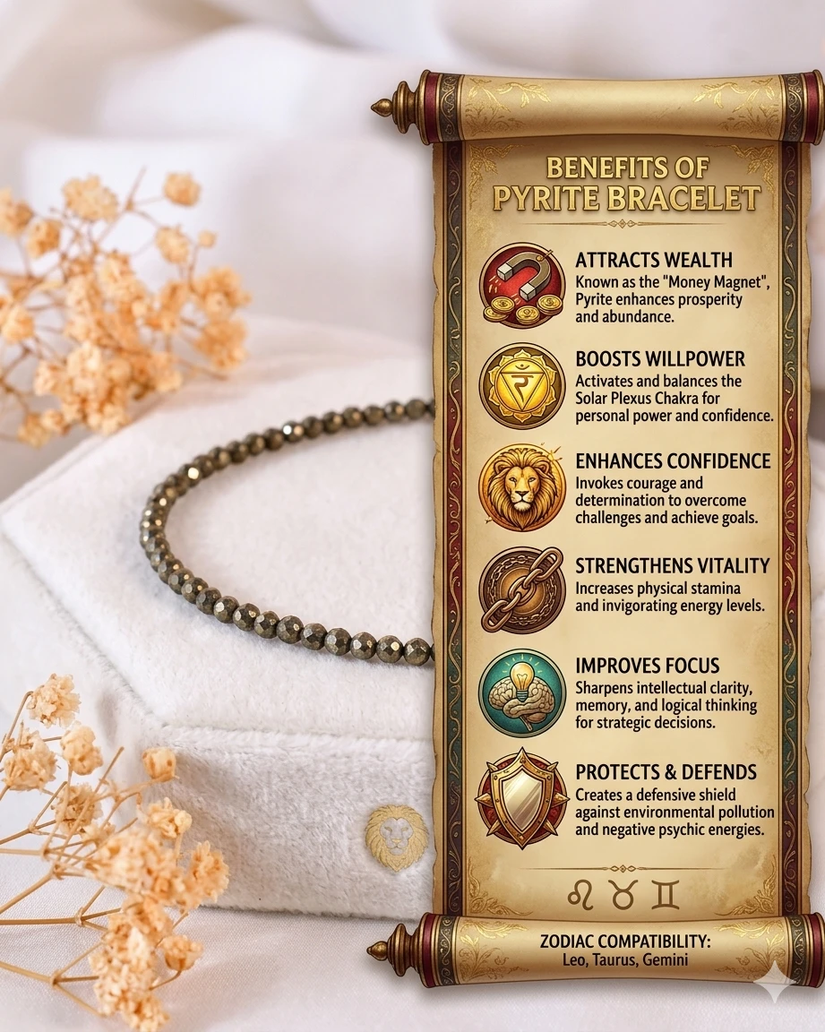 The Natural Pyrite Anklet is a unique blend of elegance and positive energy. Known as the “Stone of Wealth,” Pyrite is believed to attract abundance, success, and financial growth while providing protection from negative influences.